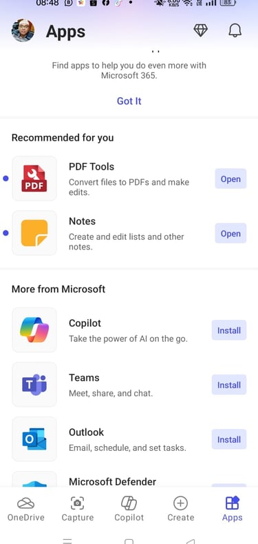 Sekarang saat nya kamu pakai juga Microsoft 365 di android kamu ya guy download di sini https://play.google.com/store/apps/details?id=com.microsoft.office.officehubrow